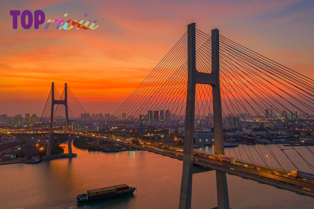 Một trong những địa điểm ngắm hoàng hôn đẹp bậc nhất Việt Nam chắc chắn phải có cái tên Cầu Phú Mỹ. Chỉ cần đứng ở trên cầu vào khoảng thời gian từ 17h00 – 18h00, bạn chắc chắn sẽ bắt trọn khoảnh khắc hoàng hôn dịu nhẹ hòa lẫn cùng làn xe tấp nập qua lại. Đây cũng là một trong những địa điểm hẹn hò mà giới trẻ Sài thành vô cùng yêu thích. Vì vậy, bạn còn chần chừ gì nữa mà không hẹn người thương đến Cầu Phú Mỹ ngắm hoàng hôn nhỉ?